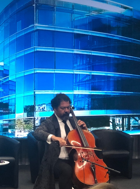 The ceremony ended with a beautiful musical performance from Karim Wasfi, Founder of Peace Through Arts, Cellist, and former Conductor of the Iraqi National Symphony Orchestra. He talked briefly about his inspirational work on fighting terrorism and ensuring support to the victims through music.
