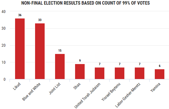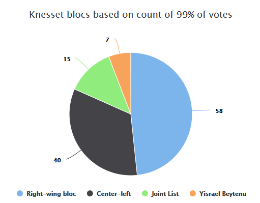 “The way out of the political impasse runs through Netanyahu.” According to one of Israel’s largest newspapers, Yediot Ahronoth, the message from the polling stations is clear: amidst fears over the spread of the Coronavirus, concomitant economic turbulences, and a care-taker government without any real budgeting or appointing power, Israelis thrust their support behind the devil they know rather than the one they do not (Benny Gantz), and helped Netanyahu’s right-wing-religious bloc to 58 out of a possible 120 Knesset seats. Although this places the right-religious camp three seats short of an absolute majority, it is still possible that a governing coalition will be formed with Netanyahu (Likud) at its helm. Most commentators agree that there are three possible scenarios from here on out: A At least three Knesset Members (MKs) from the Centre-Left or Yisrael Beiteinu defect to the right-wing, giving it an absolute majority; B A unity government is formed between the Likud and Gantz’s Blue and White, possibly with alternating premiership between Bibi and Gantz, or without Netanyahu; C Coalition talks fail again and a fourth election takes place in August. After three elections within the last 11 months, neither the Israeli public nor most political parties want another election, rendering the third scenario unlikely. A national unity government could materialize if Bibi does not find enough defectors, which mainly depends on Yisrael Beiteinu’s stance towards Netanyahu and the religious parties. Although Yisrael Beiteinu’s secular-nationalist ideology is not far from Likud’s, its leader Avigdor Liberman has a long-standing rift with the ultra-orthodox over military conscription, and a more personal one with Netanyahu. Indeed, Yisrael Beiteinu has indicated that it would support an opposition bill disqualifying Netanyahu from the premiership over his criminal indictments. That being said, the Likud bloc should have some formidable bargaining chips for defection, like complimentary ambassadorial or even ministerial roles. The morning after the election, the Likud claimed that it already had defectors in the pipeline.