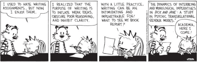 Your reader is not stupid, so don’t make them feel like they are. One reason why individuals of the academese style write the way they do is that they believe they have some intellectual gift allowing them to see what the layman is unable to see. What’s more likely is that the truth is available for all to grasp, if only you learn to walk with your reader down the right path.