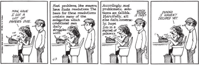 How unbearable was that? Yeah, never do this. You should be offended that I wasted your valuable time having you read through my thought process. We start with paper proposals and outlines specifically for this reason – to help the writer (not the reader) organize and clarify thoughts. Before you begin to write the final draft, you must already know the truth.