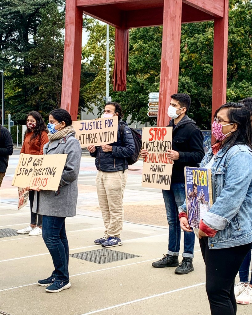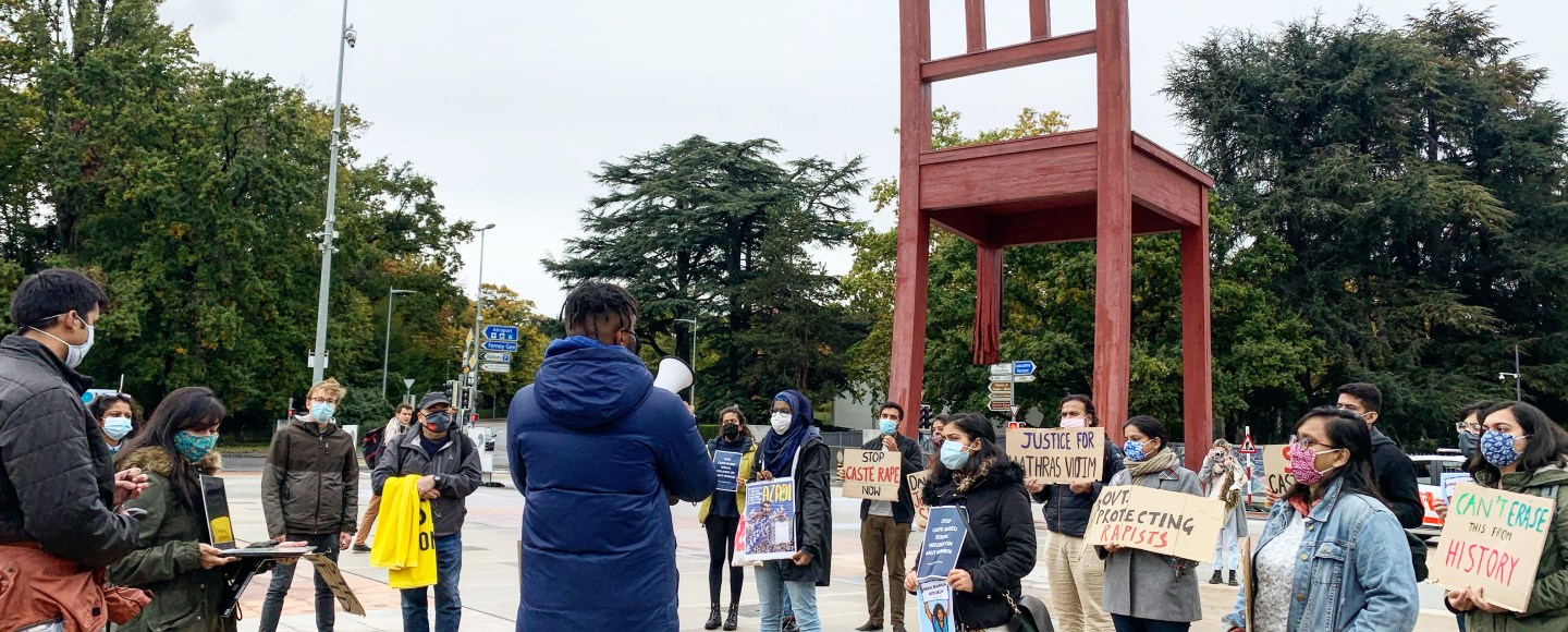 On 10 October 2020, students from The Graduate Institute, Geneva assembled by the Broken Chair in front of Palais des Nations to protest against the gang rape by four upper caste Thakur men of a 19-year old Dalit woman in the Hathras district of Uttar Pradesh(UP). The protestors gathered to condemn her rape and the state police’s subsequent irresponsible treatment of the case. Dalit, meaning ‘broken/scattered’ is the term used for people belonging to castes in India who have been historically subjected to untouchability. They are considered to be outside the four-fold varna system prevalent in Hinduism. This case, one of the many heinous caste atrocities committed in India on a daily basis, has sparked public outrage against the ruling government and its absolute disregard for the law.