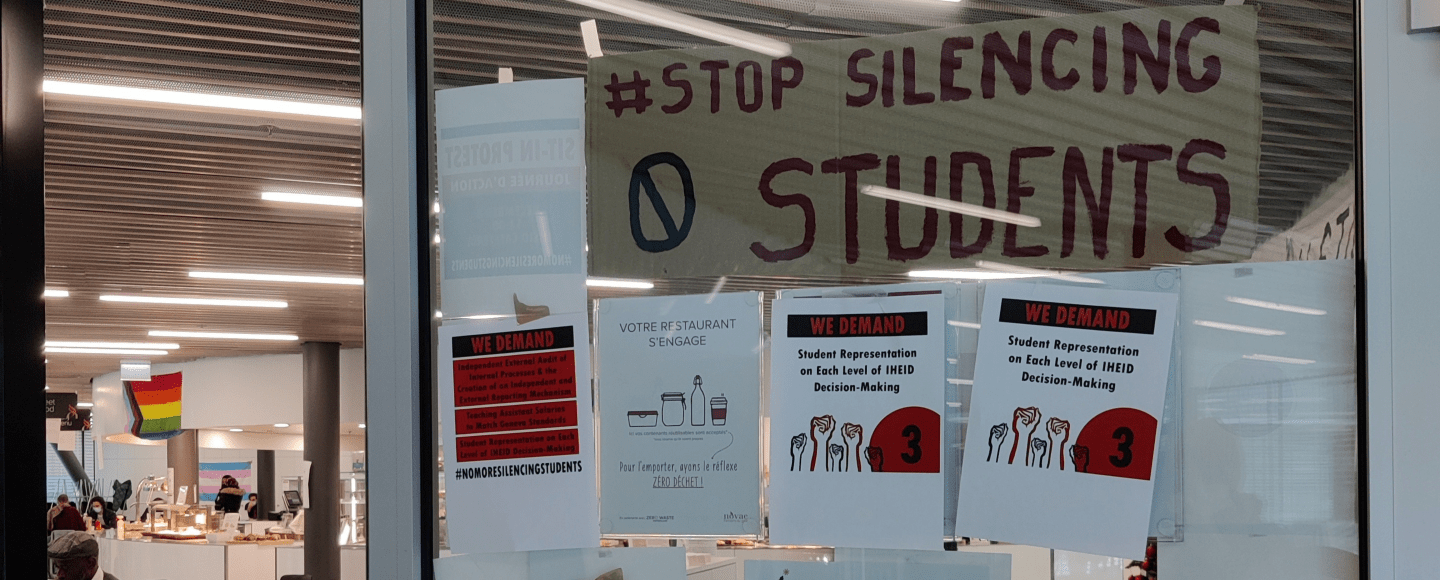 According to Aurélie: “ we plan on staying here for the next two weeks if necessary, until we are heard. […] This is representative of many students’ emotions, it was easy for students to come to this event today due to the fact that the answers from the director were unsatisfactory”. The protesters have attracted a lot of media attention, from the Geneva canton, and even at the Federal level. Moreover, according to them, they received a lot of silent support from those students who cannot join in the occupation. “We also have to remember why some people can’t be here. There are people that depend on the Institute for their salaries, their houses, their education, maybe even their visa. They do not have the chance of speaking up” (Tobias, student protester). In addition, the #stopsilencingstudents movement has also being circulating a petition for students and alumni to sign which has collected (at the moment of writing) 255 signatures.