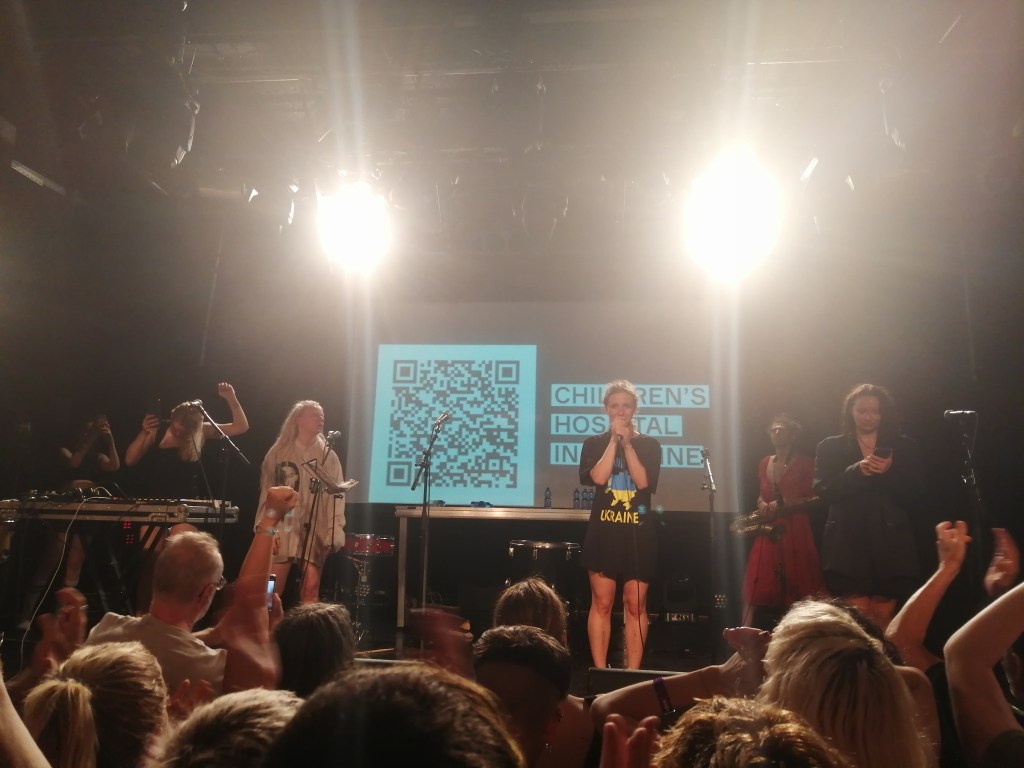 When the frenzy of the performance wore off, the artists came back on the stage for a quick speech, in which they answered the Russian embassy’s statement and announced a fundraising for a hospital in Kyiv. After a final “Fuck Putin”, taken up in chorus by the audience, Pussy Riot left the stage, leaving Maria Alyokhina’s girlfriend at the turntables for the rest of the night.
