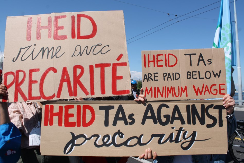 Since 2020, Teaching Assistants (TAs) have been fighting for fairer wages, better working conditions, and improved financial and employment security at The Geneva Graduate Institute (IHEID). TAs are essential to student learning and the broader functioning of the Institute. In addition to supporting professors, TAs are often the only point of contact and support for students throughout their studies. Despite their essentialness, IHEID TAs are amongst the lowest paid across Switzerland – receiving an income that is below the monthly minimum wage in Geneva1.