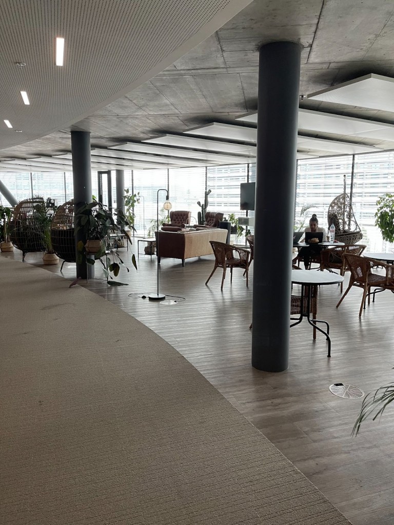 When one finally manages to reach their destination, such as their classroom, within Maison de la Paix, the layout of these spaces immediately raises red flags. Several of the classrooms at IHEID are arranged in a manner which is inhospitable to students with physical accessibility-related needs. For instance, round tables in classrooms like S8 and S12 are positioned in a way that leaves a large empty space in the middle while the chairs that surround it are cramped between the tables and the walls. Therefore, individuals with mobility aids may struggle to maneuver in the room, especially if seats next to the doors are taken. Similarly, although the Fab seeks to offer a calming environment, the layout does not offer sufficient space to accommodate physical aids without moving several chairs and tables.