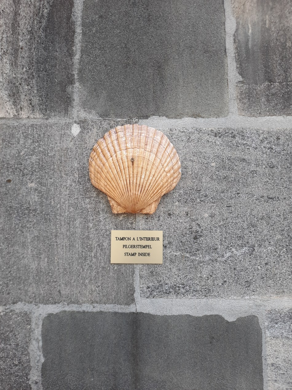 Seeing this seashell on the wall of Saint Petronilla of Pregny-Chambésy church during one of my walks, I asked myself: What does this shell mean? The caption beneath it offered no help, and there was no other information around. I saved the picture and forgot about it—until I spotted a similar sign on a street near Gare Cornavin. Something clicked in my mind, and with the help of Google Lens, I discovered what this shell and these signs represent.